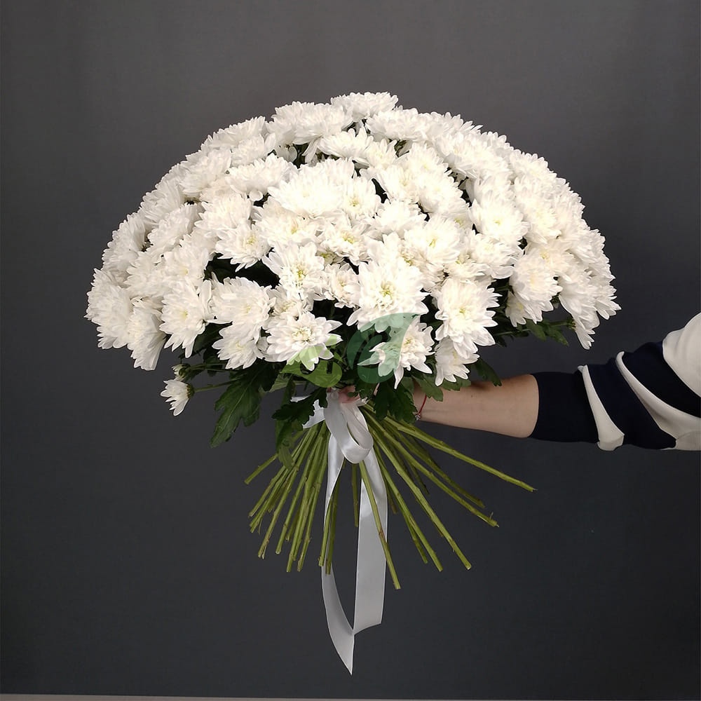 Такие букеты заказывают для самых красивых и любимых на свете. Белые хризантемы дополняют романтичными записками или открытками с пожеланиями. А мы доставляем в любой район.