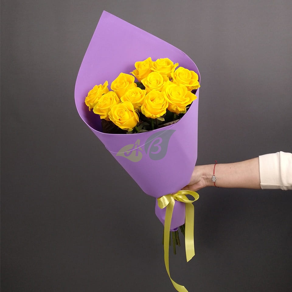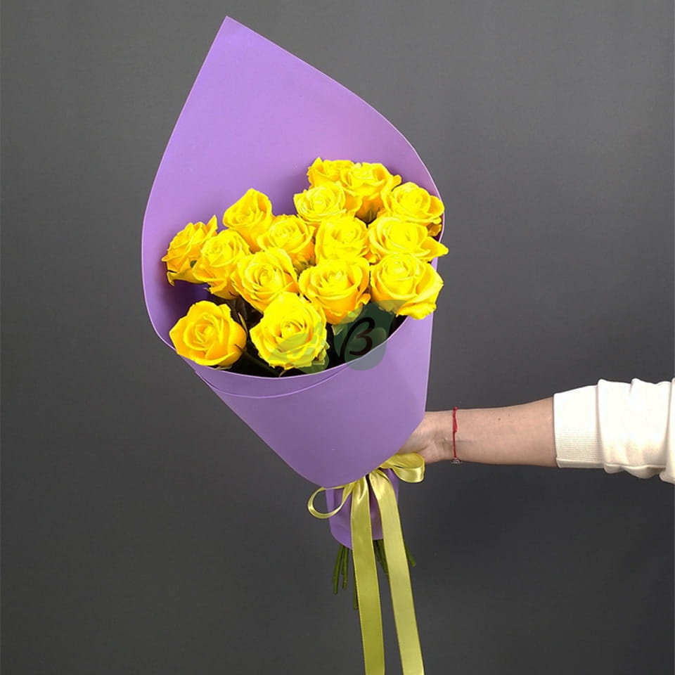 Количество желтых роз в букете вы можете выбрать сами (от 9 до 251). Мы составим композицию и доставим прямо в руки той, кого вы хотите поздравить с праздником роскошным цветами.
